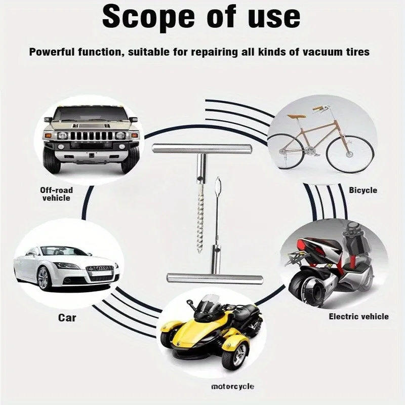 2025 Viral 34/58Pcs Auto Tire Repair Kit - Puncture Plug Tools for Cars Vans Motorcycles Bikes Dazzle