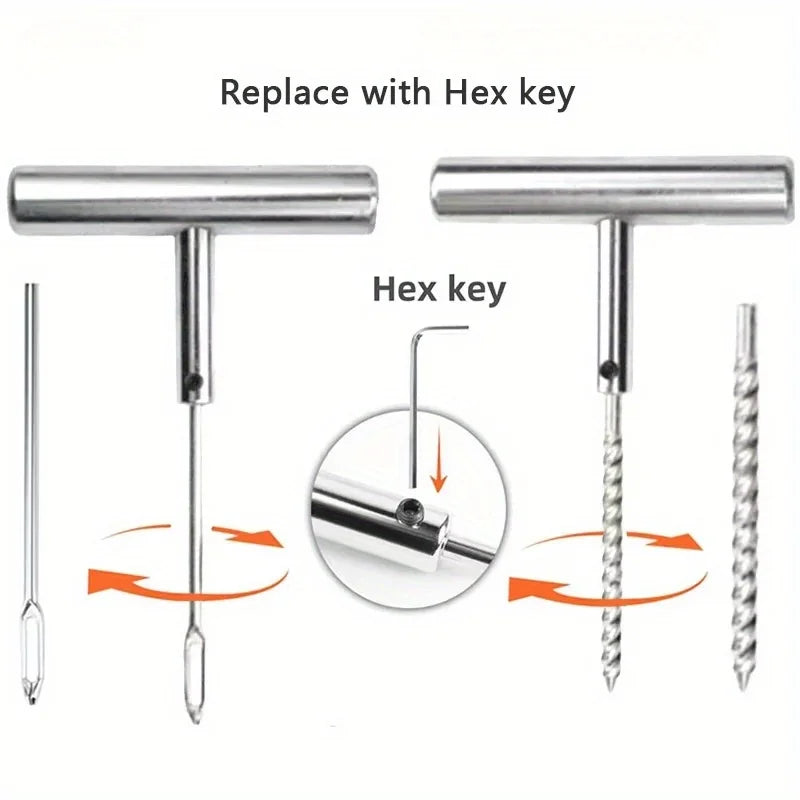 Conquer any puncture panic with Dazzle Frenzy's TikTok-viral sensation—the ultimate 34 or 58-piece tire repair kit that's exploding as the roadside essential of 2025! Imagine pulling over, locating the nail in 30 seconds, and driving away in UNDER 2 MINUTES—spiral probe cleans holes, T-handle seats rubber plugs permanently, knife trims flush for airtight seals that last 1000+ miles. No more $100 tow trucks or 3-hour waits; just addictive self-rescue power for cars, vans, motorcycles, bikes—crowbar removes screws, storage case keeps tools organized. Influencers stacking "flat tire fix" reels with time-lapse triumphs have millions watching—thousands already obsessed, turning breakdowns into brags! Perfect dazzling sync with our jewelry, home decor, pet accessories, fitness items, and viral gadgets!