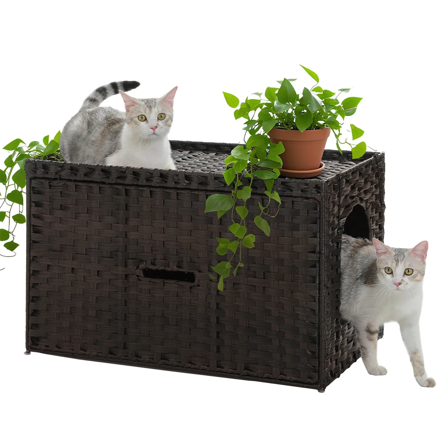 2025 Viral Rattan Cat Litter Box Enclosure - Handwoven Hidden Furniture Odor Control Cat Bed