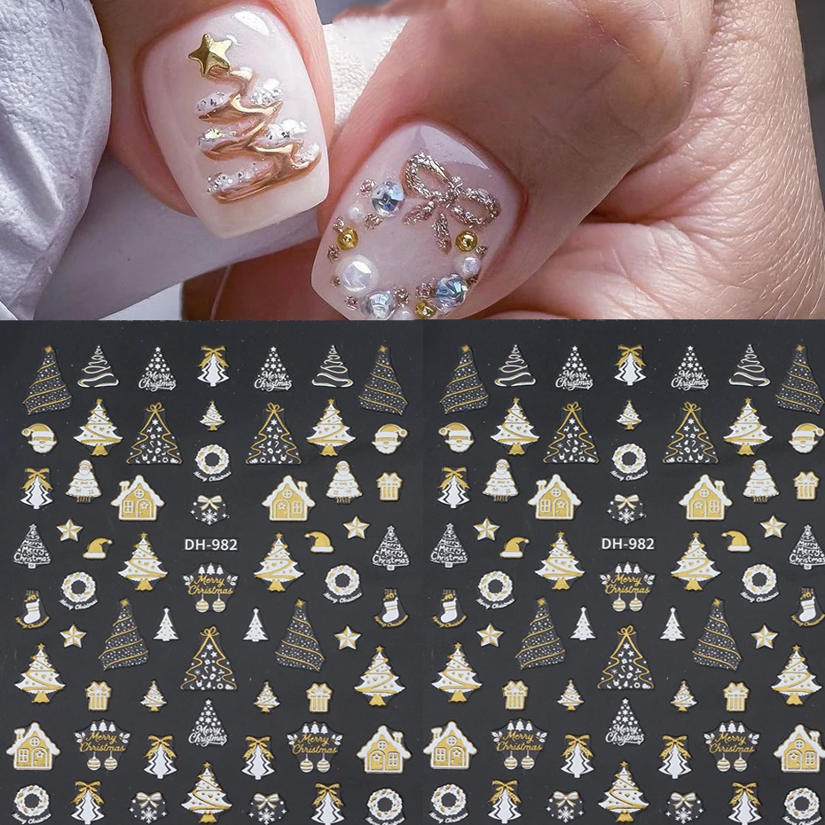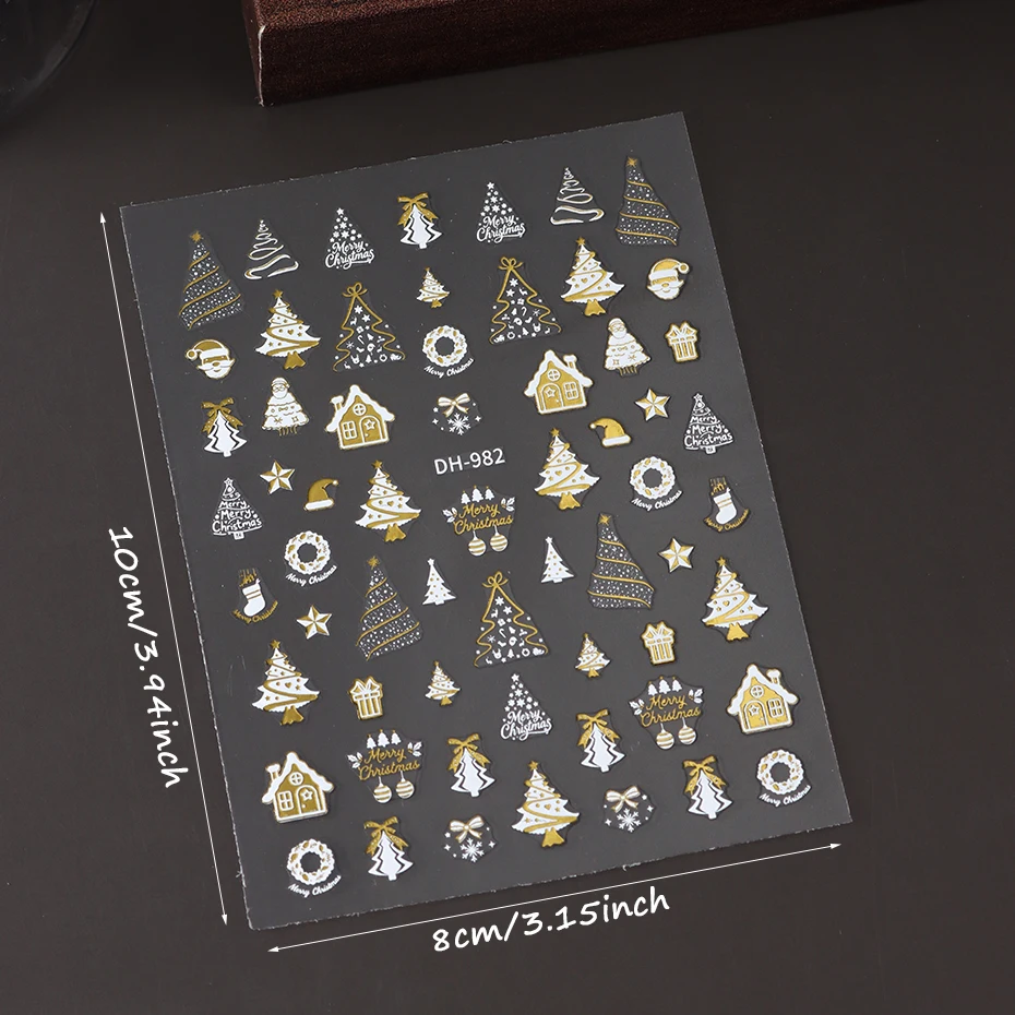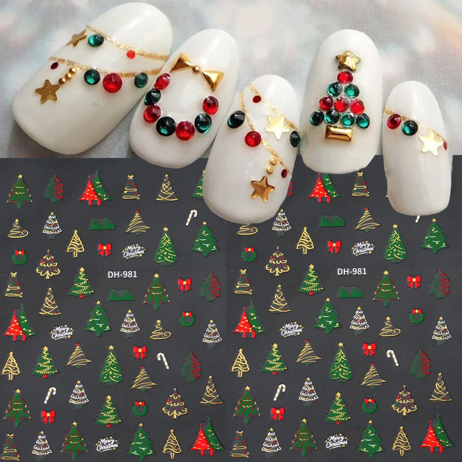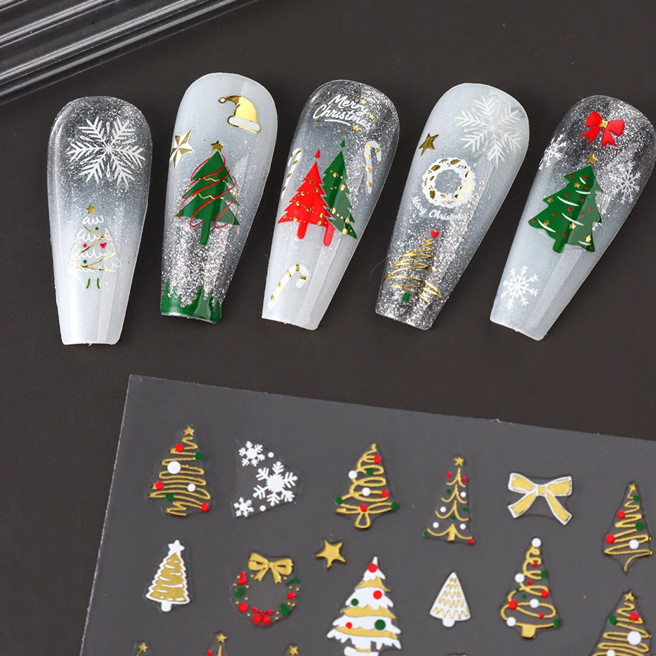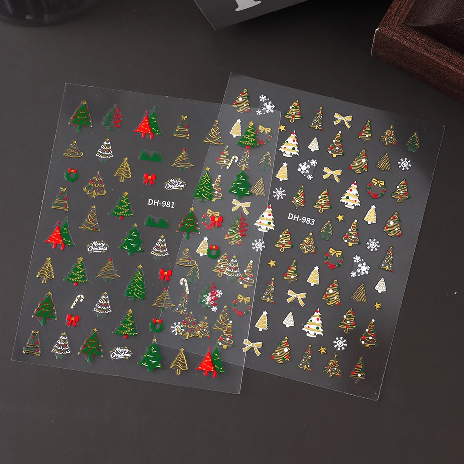Christmas nail stickers are a delightful way to enhance your festive spirit. With stunning designs like golden Christmas trees, these 3D self-adhesive stickers allow you to create unique manicures easily. You can apply them over your favorite nail polish, and they stick effortlessly to any surface. So, whether you’re attending a holiday party or simply celebrating at home, your nails will look fabulous!
