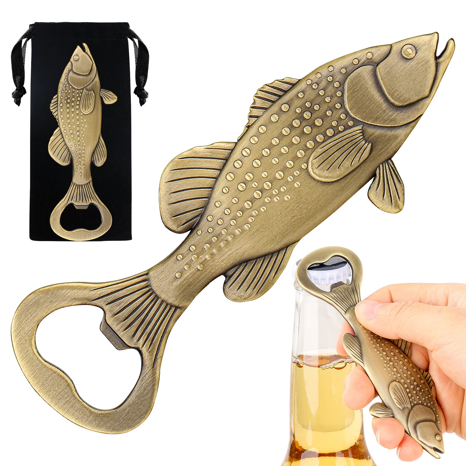 Creative Sea Bass Bottle Opener With Velvet Bag , Exclusive Gift For Fishing Enthusiasts, Bar Tool For Beer Enthusiasts, Ideal For Home And Bar Use, Novel Bar Accessories For Opening Beer