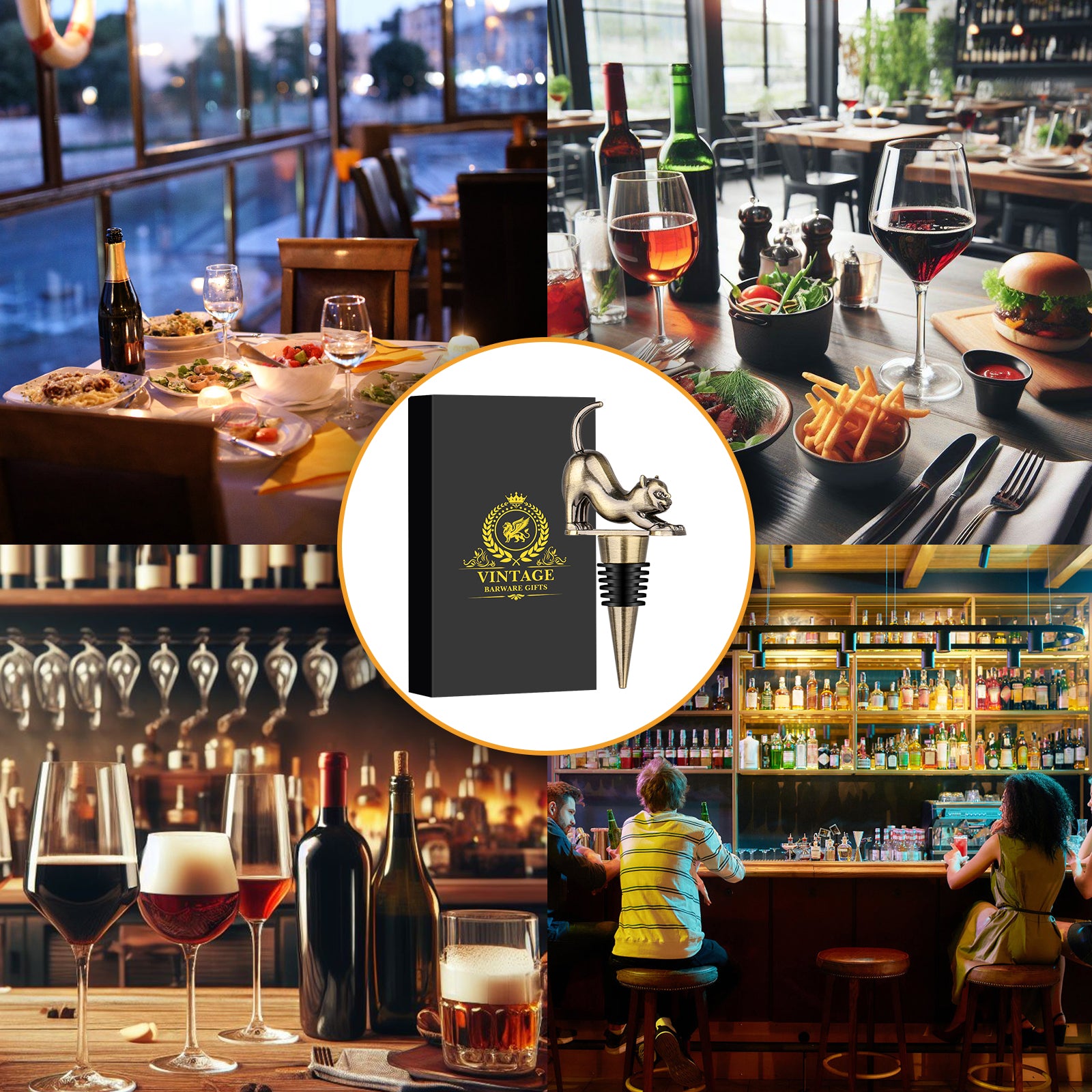 Elegant Upturned Cat Shaped Red Wine Stopper Set With Metallic Luster Bottle Stopper Gift Box, High-end Accessories For Wine Enthusiasts, A Must-have Set For Wine Collectors
